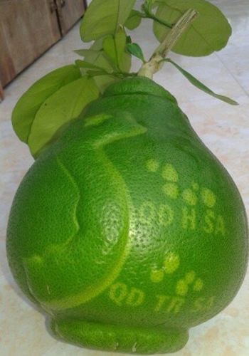 Trái bưởi khắc hình bản đồ Việt Nam được tạo hình khá công phu. Ảnh: TT. |