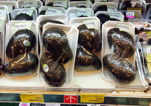 Bơ sáp Mỹ được đóng gói kỹ càng tại siêu thị có giá 280.000 đồng một kg. Ảnh:Thi Hà. |