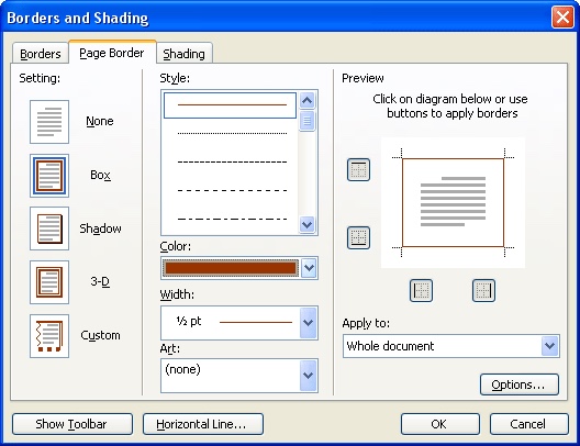 None: Không có viền Box: Viền thông thường Shadow: Viền có bóng đổ 3-D: Viền kiểu 3D Custom: Tùy chọn Style: Tại đây bạn có thể chọn nét đường viền