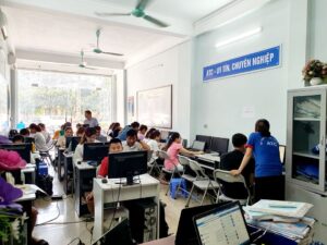 - Mỗi phòng học có trên 20 bộ máy tính, máy chiếu, mỗi học viên thực hành riêng trên 01 bộ chứng từ sống và 01 máy tính có có sự hướng dẫn trực tiếp của giảng viên.